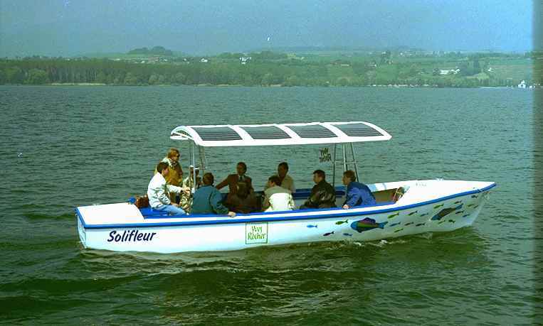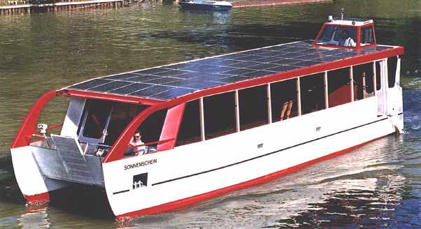 When these existing and projected examples of solar ships are compared to conventional diesel-powered ones, top speeds are usually lower, but average speeds on most inland waters are very similar because of speed restrictions on small lakes, rivers and canals. Surprisingly the costs of the solar craft seem to be similar or even lower. The big difference is of course that conventional craft cause considerable pollution and wavemaking, produce CO2 and use up oil, as do even electric craft indirectly powered by fossil-fueled power stations, whereas solar craft use few resources once they are built and can actually produce more power than they consume, if operated in a mains connection setup when not under way. Because sunlight is rather more predictable than wind in many areas, varies less, and can be stored by electrochemical means (batteries and hydrogen), solar ships may well eventually become the main means of transportation in some areas. Whether really large ships could be solarised remains to be seen. Cargo ships are generally built as cheaply as possible and presently lack the unobstructed deck area required for solar panels. Large passenger ships also tend to operate at speeds wasteful of power. Certainly there would be no problem operating ships with liquified hydrogen produced by vast solar plants in arid regions. Already several smaller boats exist which use hydrogen fuel cells.